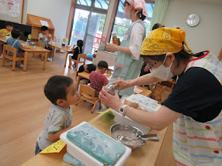 水着で遊んじゃう夏祭りが保育園で行われました。